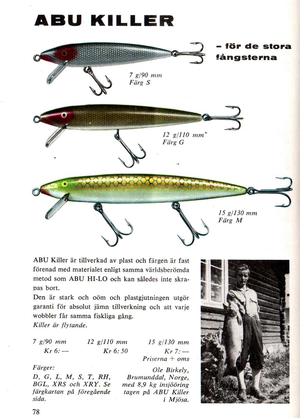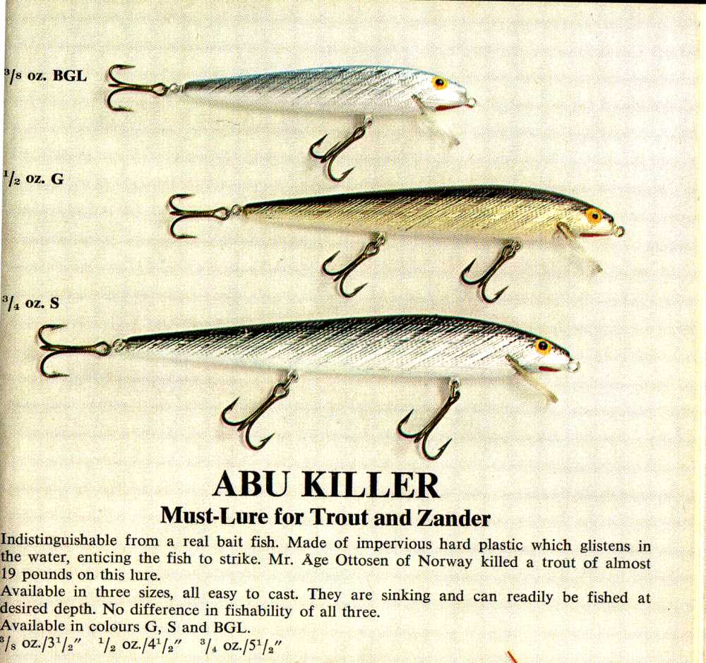 1962 The only changes to ABU Killer advertizing for the next four years is the addition of more meritorious catches attributed to the lure.