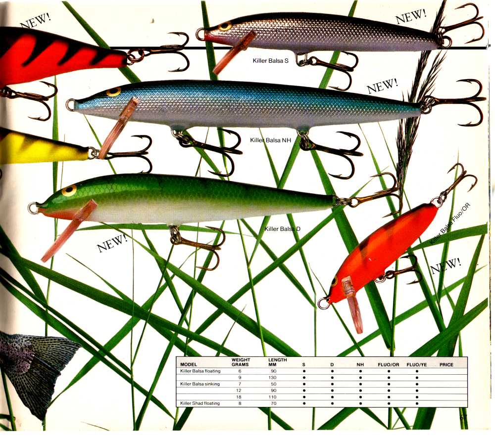 Killers no longer considered worthy of a page of their own in catalogue advertizing. The page was titled wobblers and mixed with Hi-Lo lures.