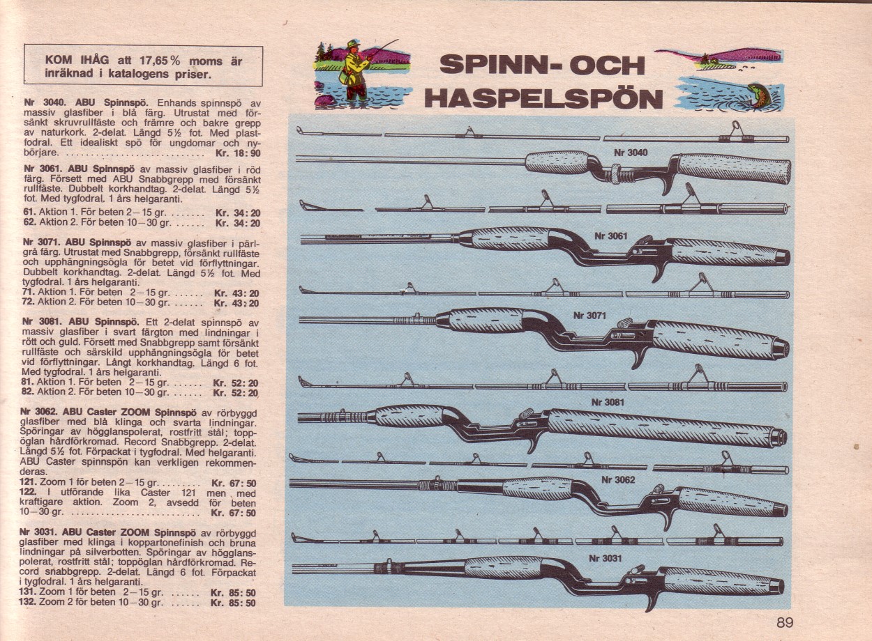 They sold most of ABU's product line, ranging from Rods, reels, lures and accessories.